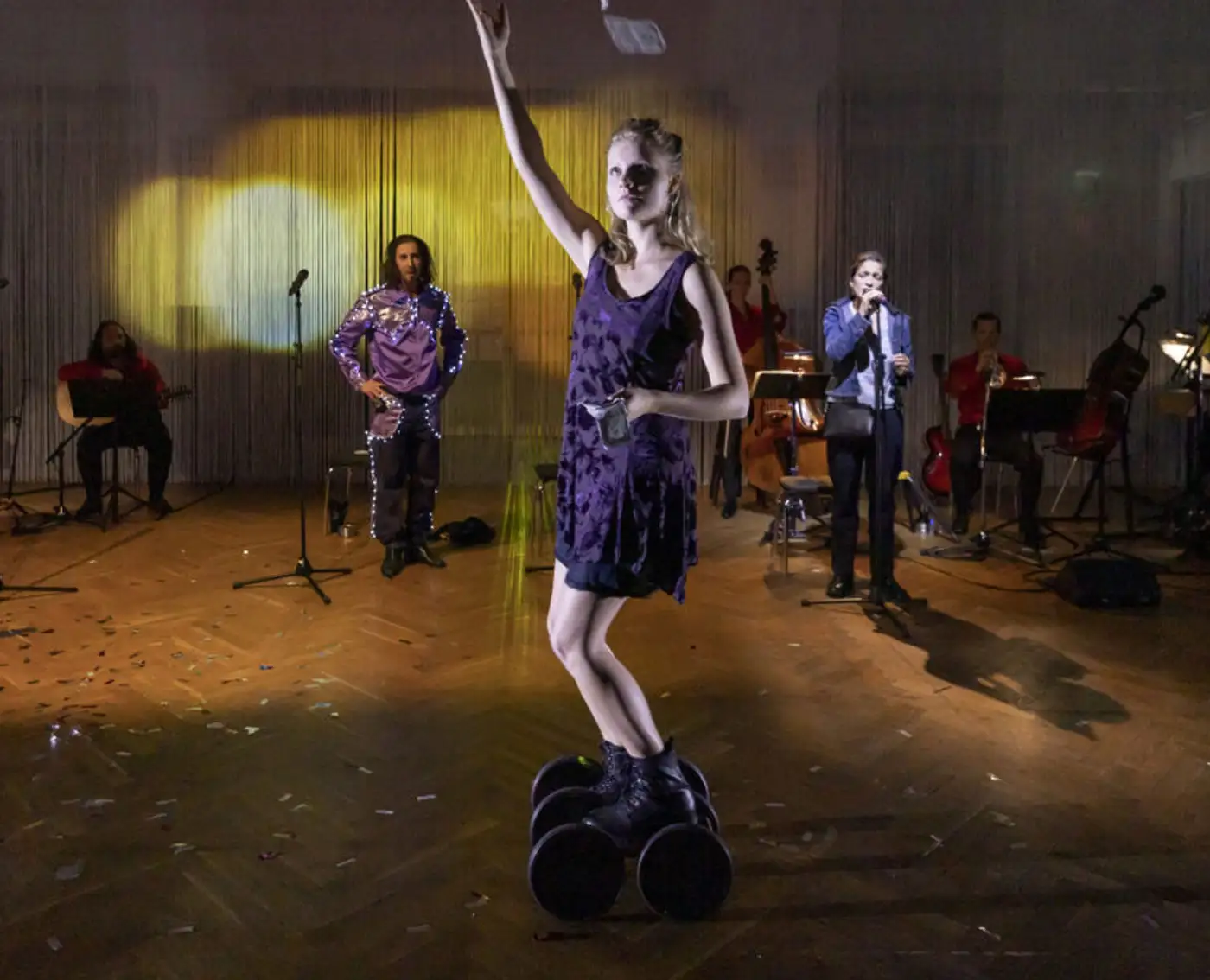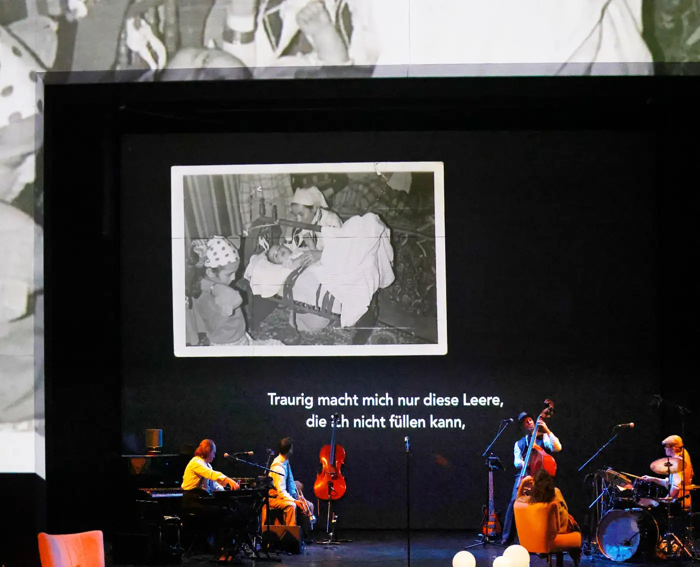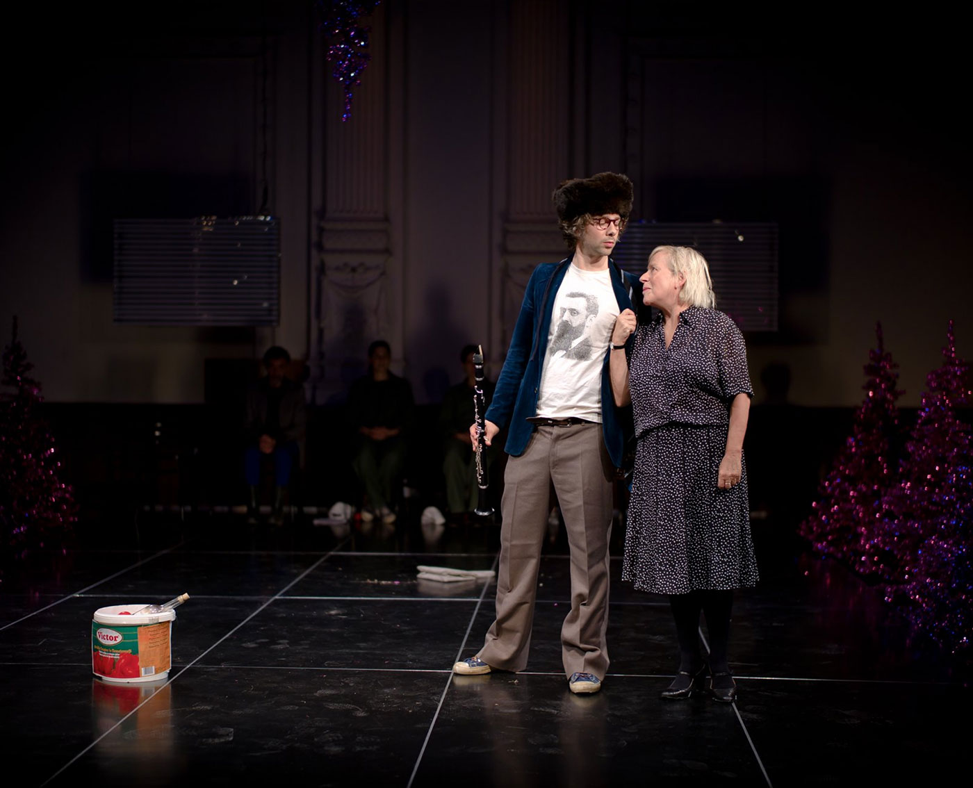 Besetzung Anastasia Gubareva, Daniel Kahn, Alexandra Sinelnikova, Ursula Werner Regie Hakan Savaş Mican Bühne Alissa Kolbusch Kostüm Sylvia Rieger live-musik Daniel Kahn Video Sebastian Lempe Lichtdesign Arndt Sellentin Dramaturgie Clara Probst, Holger Kuhla