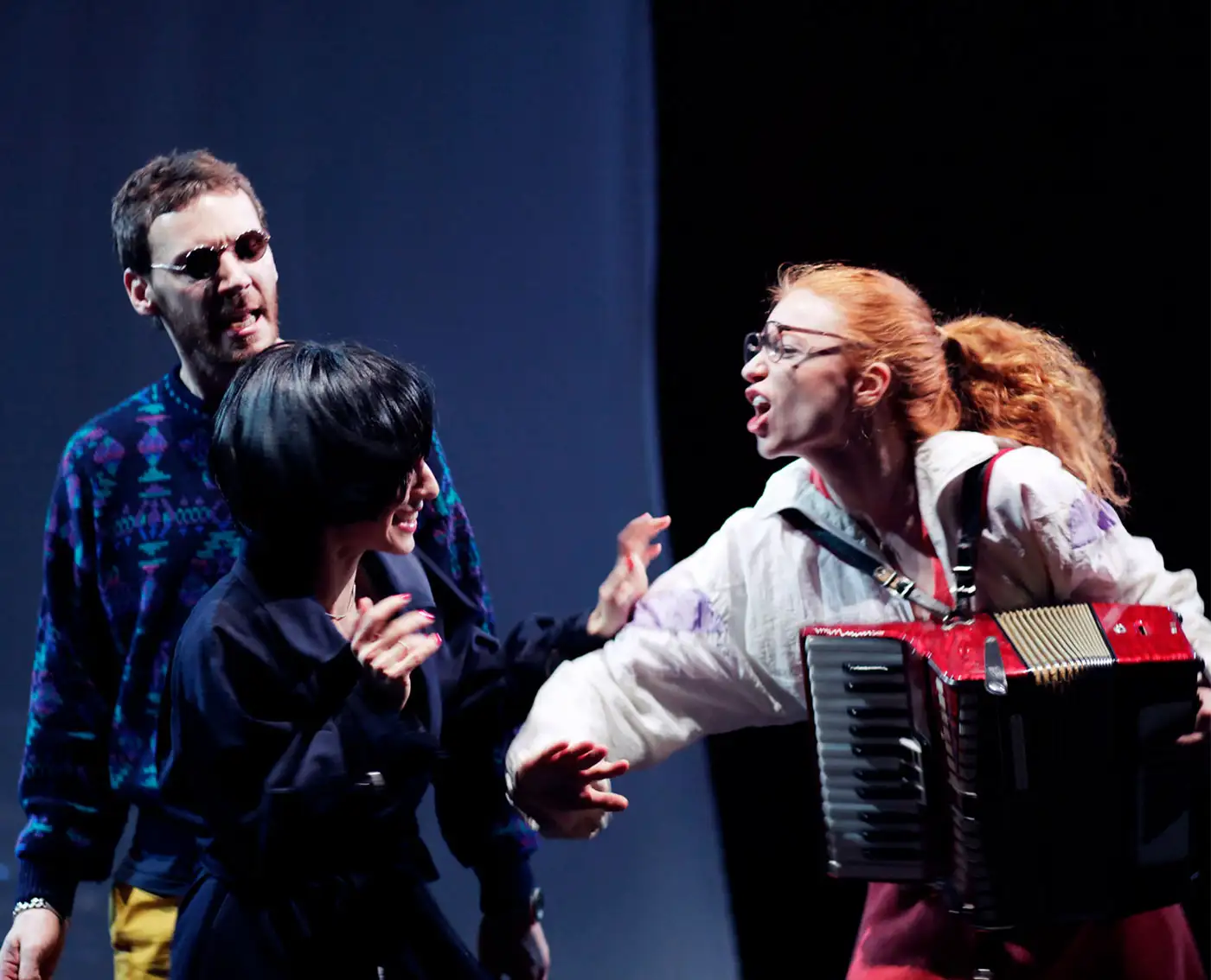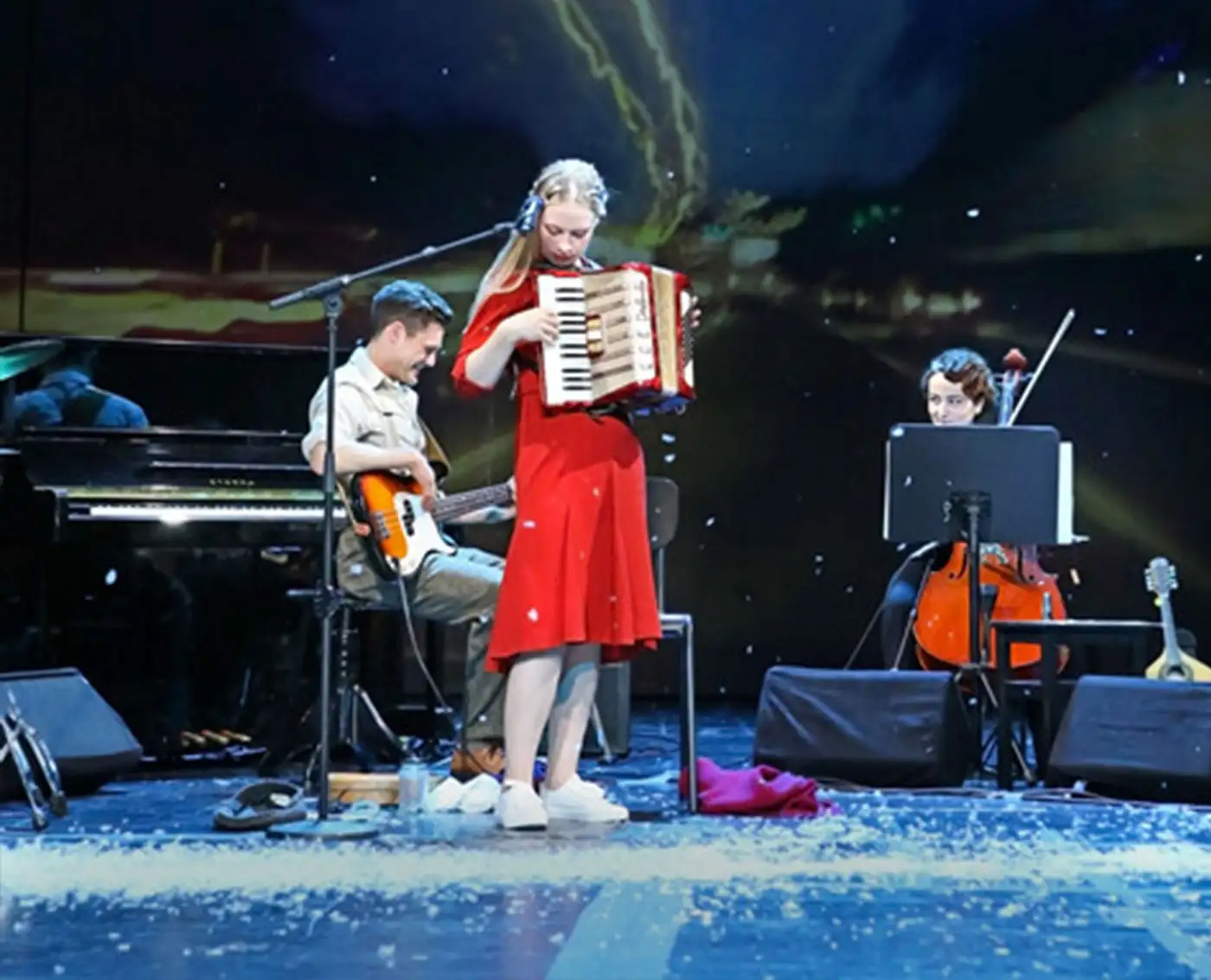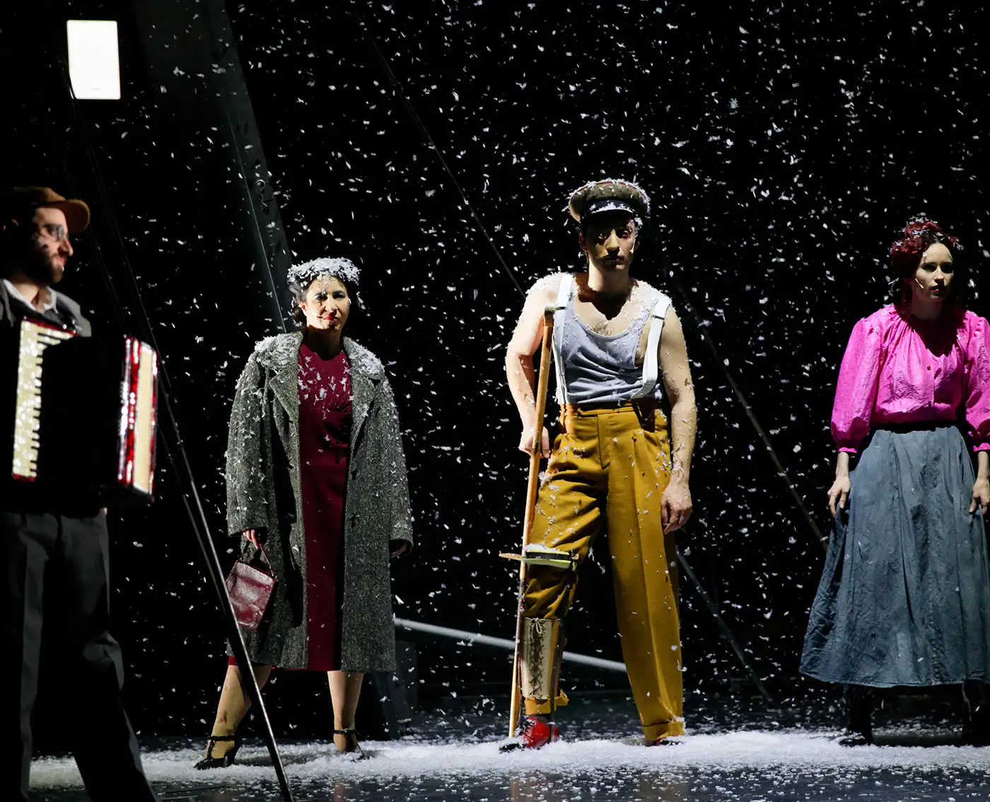 Besetzung Anastasia Gubareva, Daniel Kahn, Alexandra Sinelnikova, Ursula Werner Regie Hakan Savaş Mican Bühne Alissa Kolbusch Kostüm Sylvia Rieger live-musik Daniel Kahn Video Sebastian Lempe Lichtdesign Arndt Sellentin Dramaturgie Clara Probst, Holger Kuhla