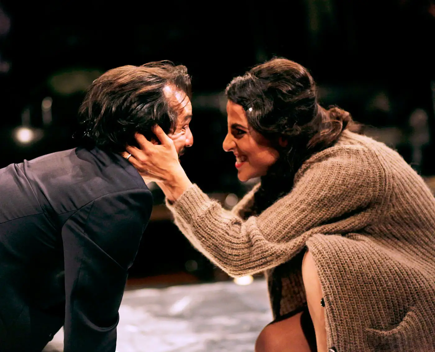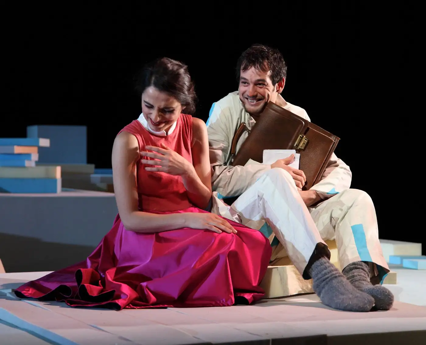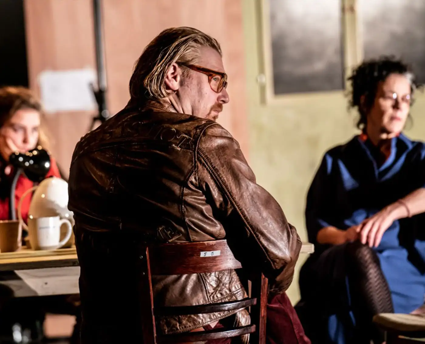 Adem steht auf einem Treppenabsatz. Rechts: Moria, Nachbarin, Geliebte, mögliche Zukunft — in wenigen Tagen könnten sie zusammenziehen, eine Familie gründen, oder sich im nächsten Moment verlieren. Links: seine Mutter Meryem, mit Koffern voller Geschirr und Schuld. Sie ist gekommen, um wiedergutzumachen, dass sie ihn als Kind in der Türkei zurückließ. Adem zögert zwischen zwei Türen: einer Vergangenheit, die er löschen will, und einer Zukunft, die ihm Angst macht. Dazwischen steht die Frage, ob ein Leben ohne die Last des Herkunft möglich ist.