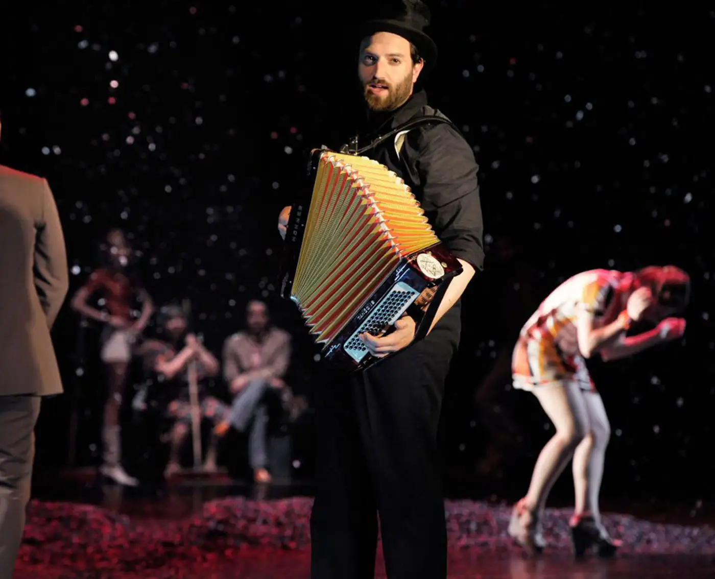 Besetzung Tamer Arslan, Mareike Beykirch, Anastasia Gubareva, Marlene Lohse, Daniel Kahn, Sema Poyraz, Ruth Reinecke, Taner Şahintürk, Dimitrij Schaad, Aram Tafreshian Text & Regie Hakan Savaş Mican bühne Sylvia Rieger Kostüm Pieter Bax Musik Daniel Kahn Licht Carsten Sander Dramaturgie Irina Szodruch