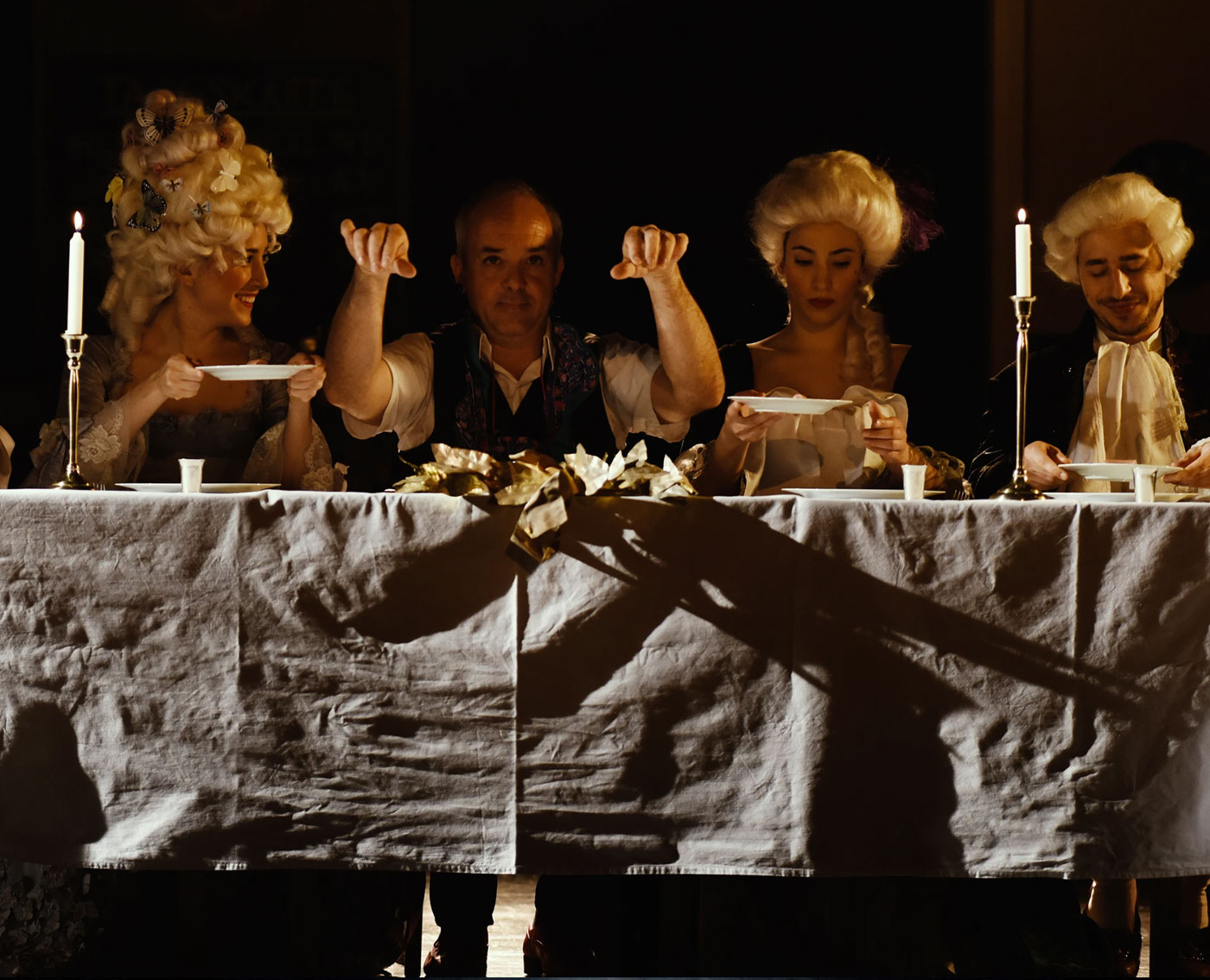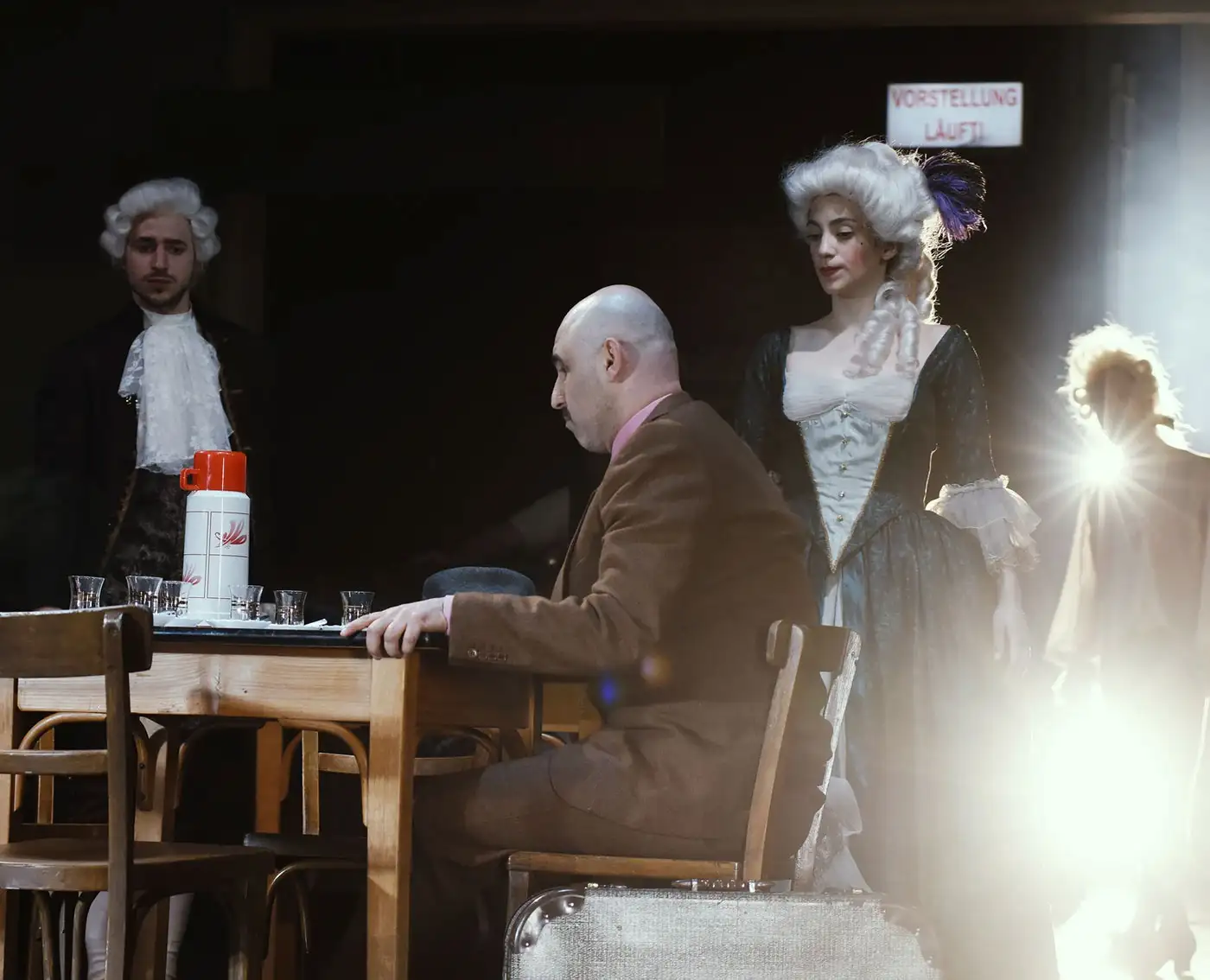 Ein Theater, irgendwo im Nirgendwo. Während auf der großen Bühne ein fulminanter Operettenabend über die zweite Wiener Türkenbelagerung gegeben wird, sitzt ein Haufen verlorener Theaterstatisten in der Kantine und wartet auf den großen Auftritt.