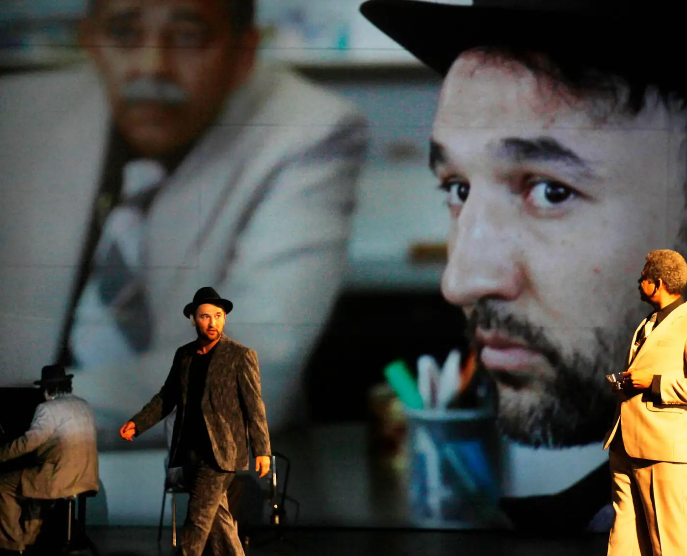 Besetzung Oliver Mallison, Anna Blomeier, Meryem Öz, Sandra Flubacher, Stefan Stern, Felix Knopp, Daniel Kahn Regie Hakan Savaş Mican Bühne Hakan Savaş Mican, Marion Schindler Kostüm Miriam Marto musik Daniel Kahn Live-video Ruben Christiansen, Julian Hübner Video Mikko Gaestel Dramaturgie Susanne Meister