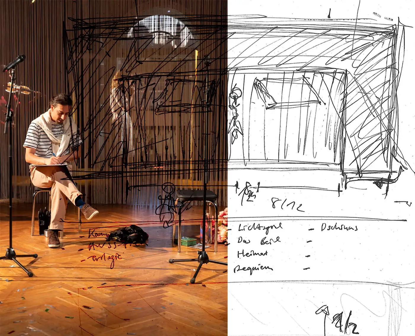 Elyas ist wütend, ohne zu wissen, worauf. Statt sein Jurastudium zu beenden, hängt er in Kneipen herum, springt über parkende Autos, beschimpft die Stadt aus dem Fenster und erzählt jedem von seinem großen Projekt: einem digitalen Archiv für die Generation seiner Eltern – die sogenannten Gastarbeiter:innen. Ein Stück über die Unruhe derer, die zwischen Erinnerungen leben, die nicht ihre eigenen sind.