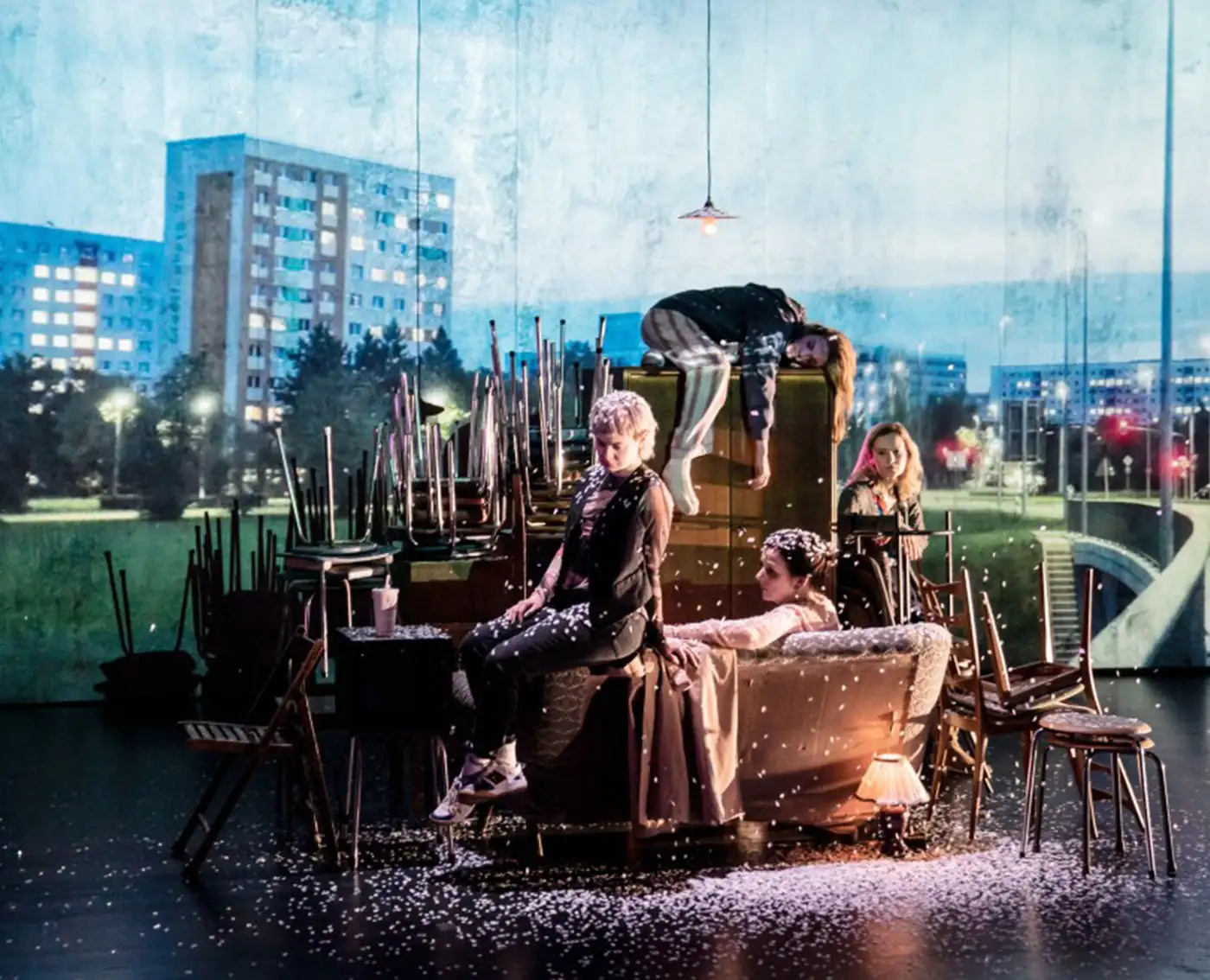 Besetzung Pauline Rénevier, Toini Ruhnke, Stefan Stern, Oda Thormeyer, Oana Solomon Regie Hakan Savaş Mican Bühne Michael Köpke Kostüm Sylvia Rieger Live-musik Masha Kashyna Video Sebastian Lempe Dramaturgie Susanne Meister