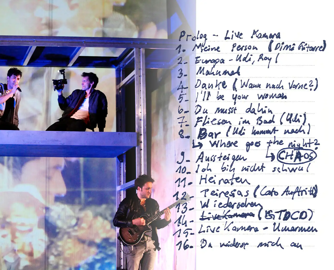 Besetzung Alida Stricker, Hasan Hüseyin Taşgın, Rita Feldmeier, Berivan Mara Kaya text, Lyrics & Regie Hakan Savaş Mican Bühne Alissa Kolbusch Kostüm Marcus Karkhof musik Jörg Gollasch Live-musik Peer Neumann, Lukas Fröhlich, Fabian Engwicht, Isabelle Klemt, Natalie Plöger, Manuel Zacek, Wassim Mukdad, Lizzy Scharnofske, Philip Dornbusch, Fabiana Striffler, Meike-Lou Schneider Video Sebastian Lempe Dramaturgie Holger Kuhla